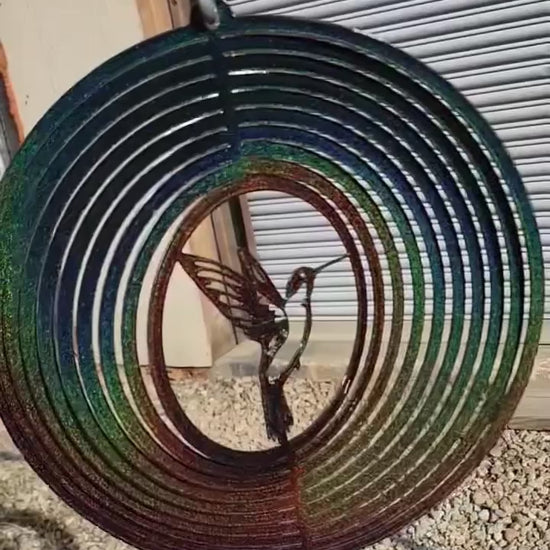 12" diameter with hardware included. These stainless-steel garden spinners are perfect for that empty shepherd's hook in your garden or for your deck. If you'd like a custom size, please fill out this form.